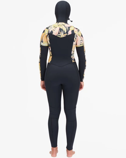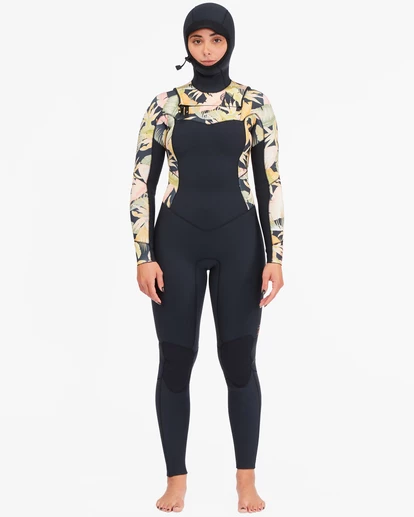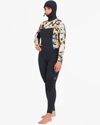 Stand out in the line-up with signature style and progressive performance. Equipped with Billabong wetsuit technology, including a chest zip and Graphene Recycler thermal lining at the internal chest and back panels, combined with silicon stretch lining at the lower legs and sleeves, the Surf Capsule Collection womenโs full suit is customized with palm printed panels. Combining style, performance, and sustainability, the 4/3 Salty Dayz Hooded Full Wetsuit is now made with stretchy and eco-conscious Superlight neoprene and water-based adhesives.