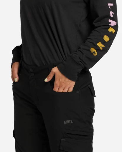 Need more storage on the mountain? The Nela delivers a high-performance snow pant with plenty of pockets for your essentials. Waterproofed on the outside, these insulated Adventure Division snow pants keep you warm, dry, and comfortable with a higher back waist to stop snow from creeping in and articulated knee construction for maximum mobility.