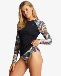 Move like a pro in this Adventure Division long-sleeve rashguard top. Crafted of recycled stretch fabric with enhanced sun protection, it has a classic fit with printed sleeves and a solid core.