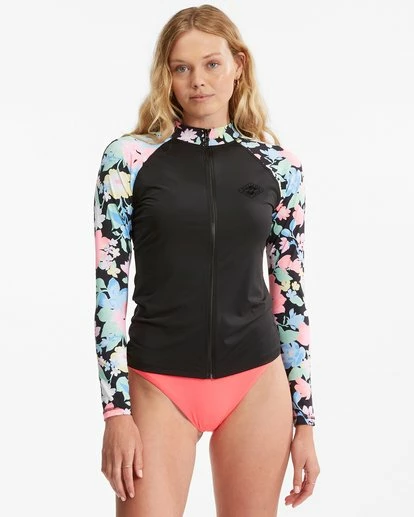With a solid core and sleeves printed with island blooms, the Feelin Tropical Long Sleeve zip-up rashguard is ready to bring the heat. The fit is classic, and the fabric is lightweight and flexible, made with recycled poly material that offers enhanced sun protection you can ride for longer.