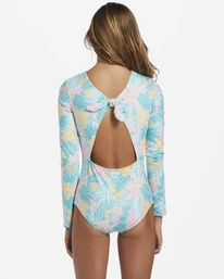 Designed with a back-zip for easy entry, this girls’ long-sleeve swimsuit is made of recycled stretch fabric with enhanced sun protection and an all-over Billabong print.