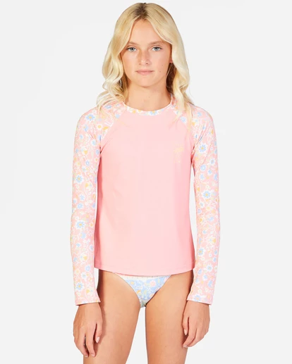 Bloom brighter than the rest of the lineup with the Girls’ Mini Mystic Long Sleeve Rashguard bikini set. Featuring floral printed sleeves and a solid core, this mock neck rashguard top is made with lightweight and stretchy recycled fabric that offers enhanced sun protection so you can ride for longer.