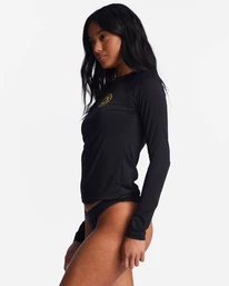 Made of recycled stretch fabric with Billabong graphics on the chest and back, this long-sleeve rashguard top offers enhanced sun protection for all-day saltwater sessions.