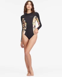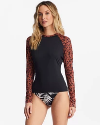 Made of recycled stretch fabric with printed sleeves and a solid core, this long-sleeve rashguard top offers enhanced sun protection so you can surf for longer.
